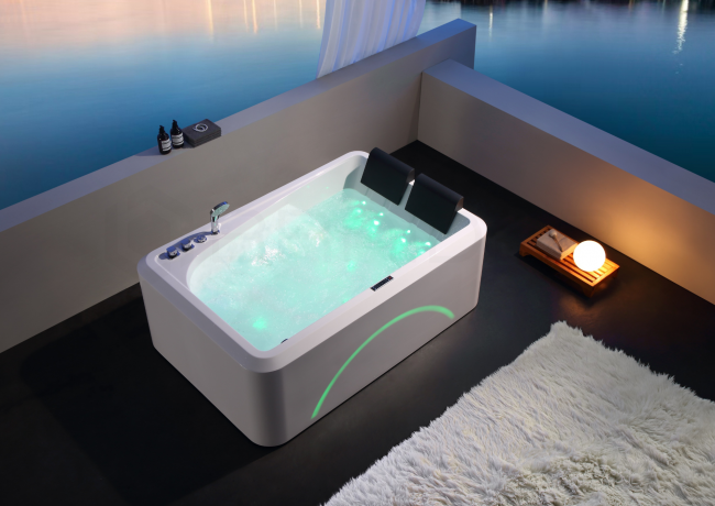 Nowoczesna wanna z hydromasażem Wiwa, wyposażona w dotykowy panel sterowania z Bluetooth posiada system masażu wodnego i powietrznego z wieloma dyszami, w tym dysze na plecy oraz dysze bąbelkowe z kolorowym podświetleniem. Wanna posiada również efektowny narożny wodospad, oświetlenie obudowy oraz mieszacz wody ciepłej i zimnej. System napędzany jest wydajnymi pompami zapewniającymi komfortowy i relaksujący masaż wodny.